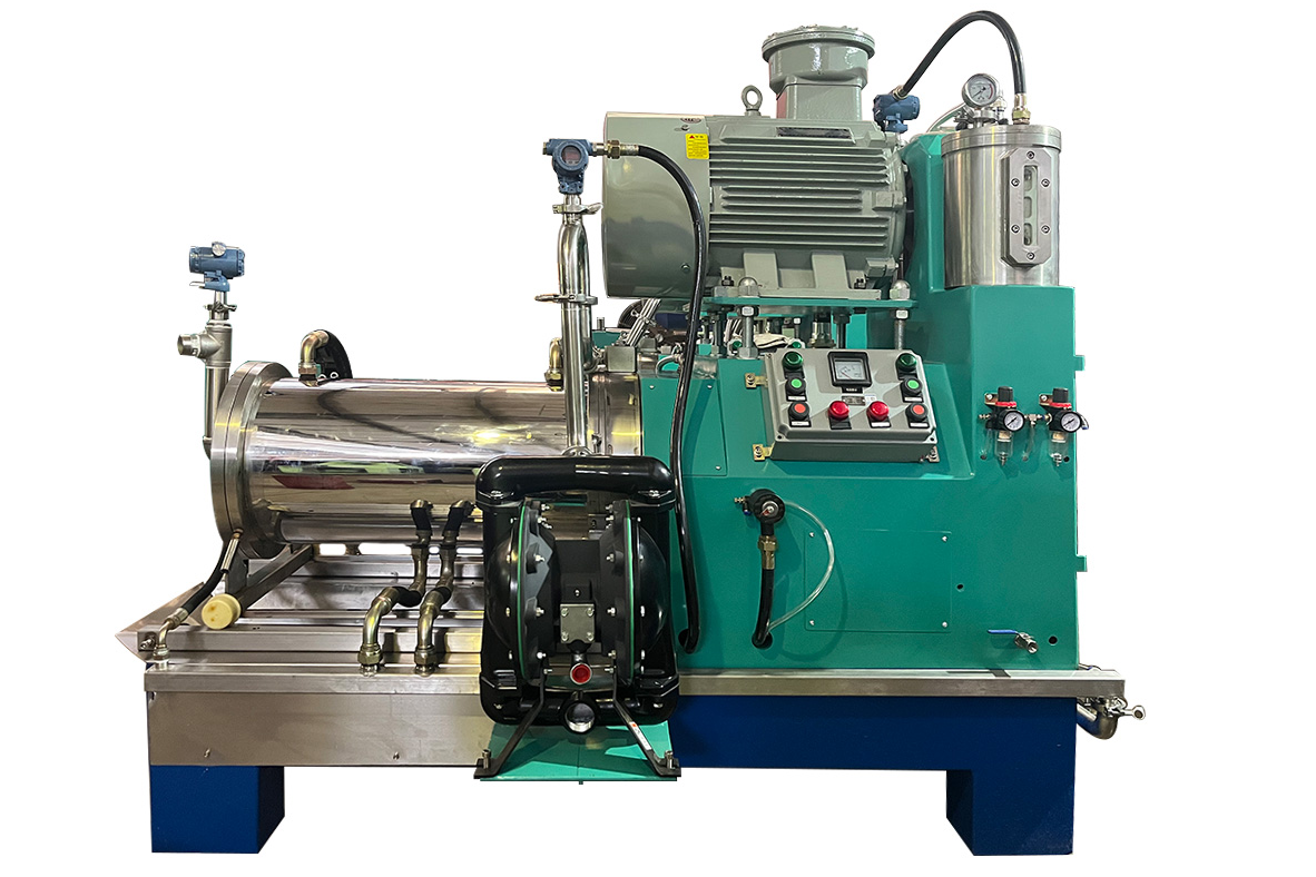 銳通NCE-50C型高效率臥式砂磨機適用于大批量,大流量物料的研磨,高效的冷卻系統以及多間隙離心分離系統,使得物料不會因分離器堵塞而造成出料不暢。主要應用于顏料、染料、色漿、農藥、水性涂料、化妝品、非礦等行業的高效率濕法研磨